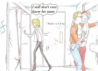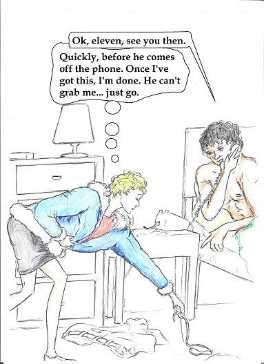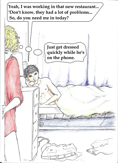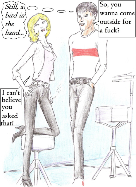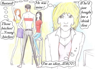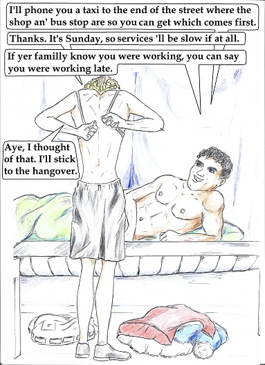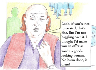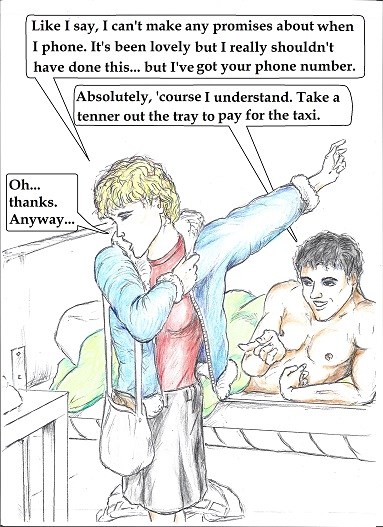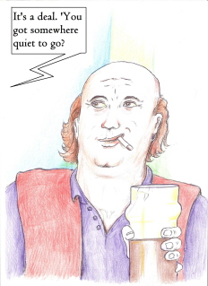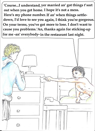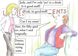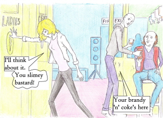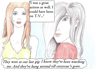 | | Artist, Ken Gaute's illustration of the first chapter of 'Loving The Predator'. Below, beneath the sales information, is his depiction of the first chapter of 'The Alchemist, the Juggler and the Ghoul'.